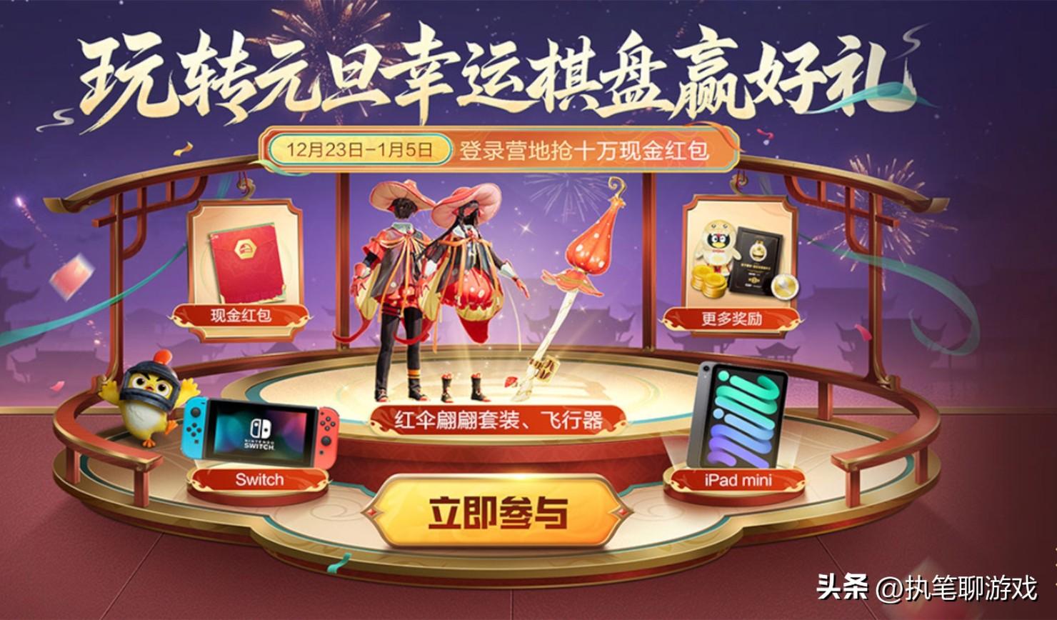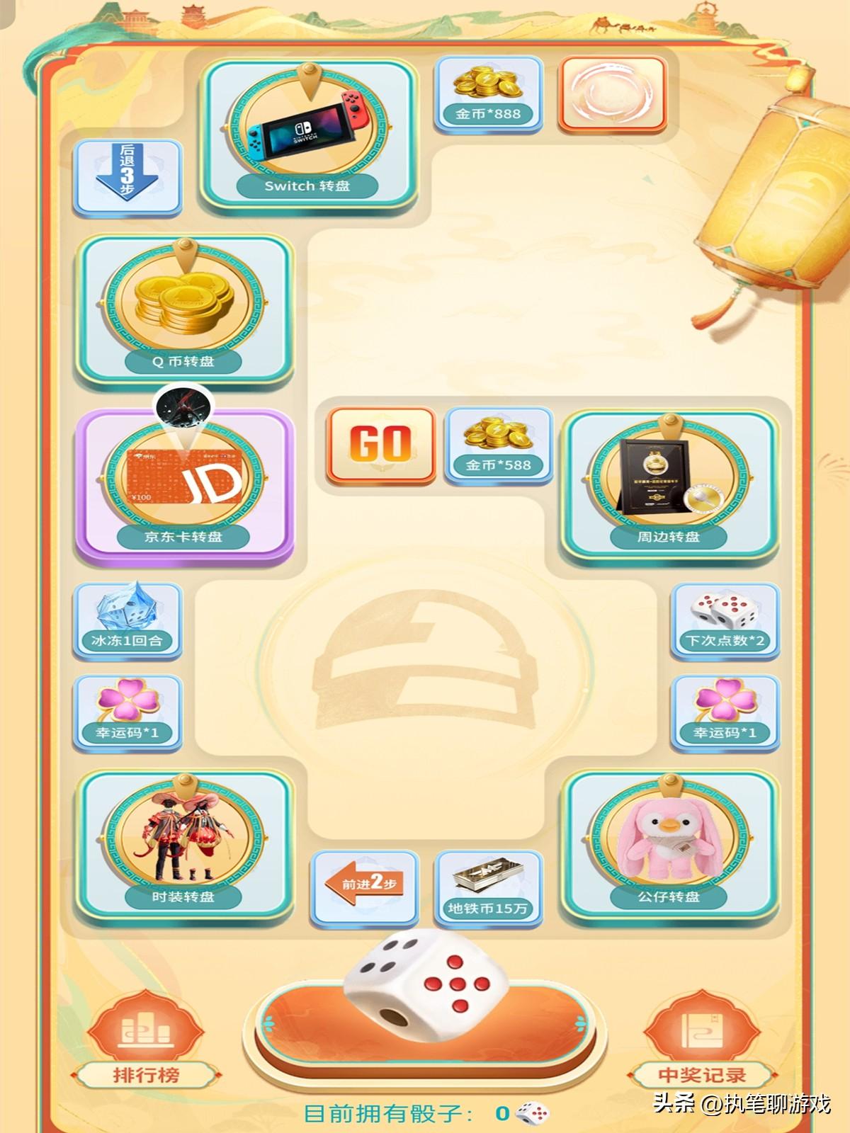 聊完了周6下午17點開啓的“賽事集市”後,咱們來跟進一下《和平精英》的福利吧,目前已經開啓了“元旦幸運棋盤”,看起來像是大富翁似的,在和平營地裏進行,光子此次拿出了紅傘翩翩、飛行器等獎勵。