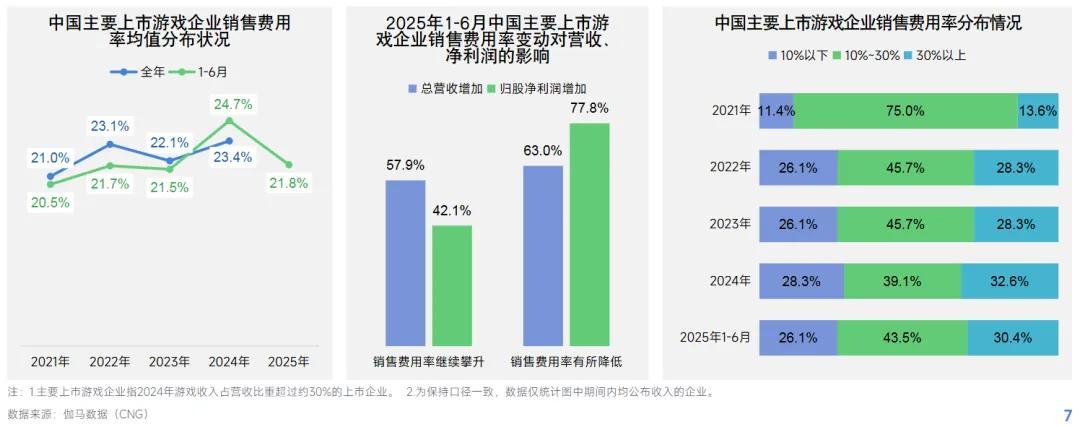第二,上半年,國內主要上市遊戲公司的銷售費用率均值,迎來近5年來首次明顯下降。遊戲公司銷售費用大頭是廣告費,可以簡單認爲,大公司廣告投入大規模精簡,粗暴鋪量模式正被淘汰。