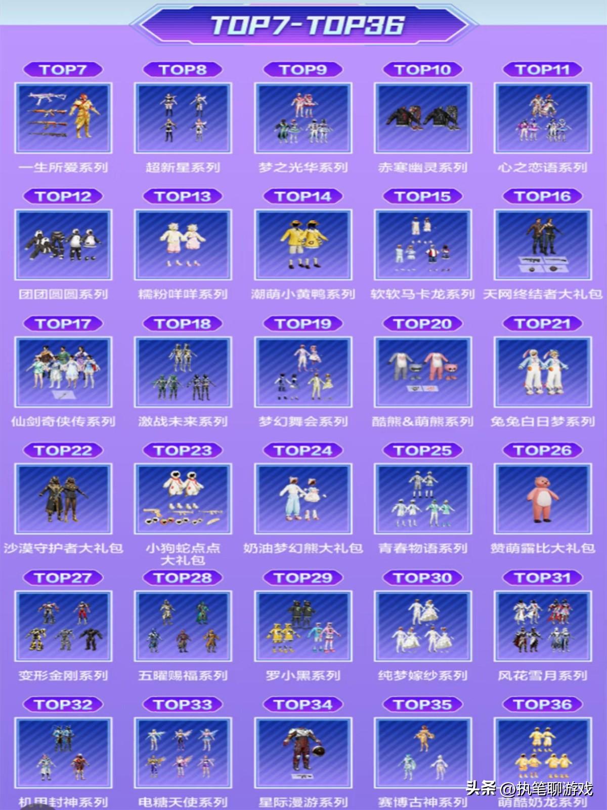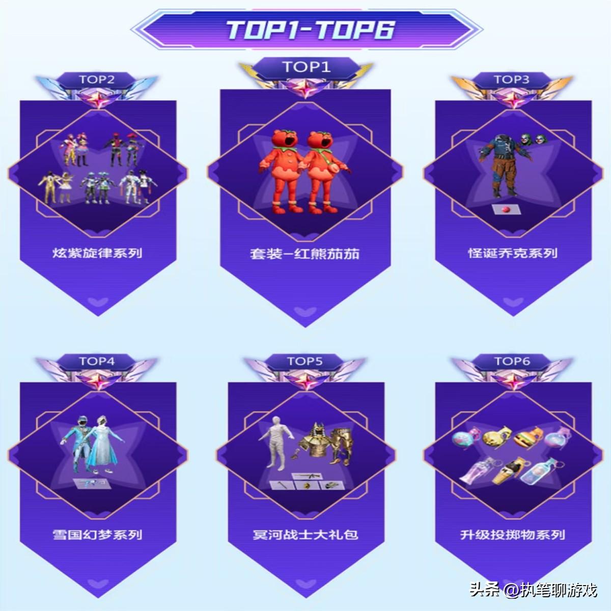 首先我們來說一下“終版·名單”,前六名分別是紅熊茄茄、怪誕喬克、炫紫旋律、雪國夢幻、冥河戰士、升級投擲物系列。