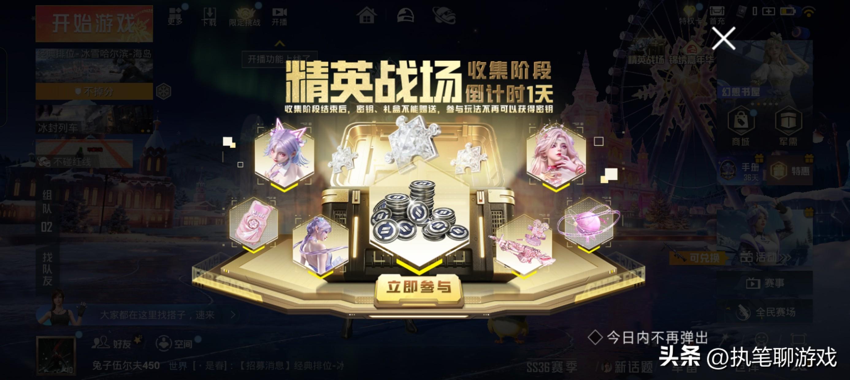 聊完了“和平小店”的相關事宜後,天哥還需要提醒一下大家:“精英戰場”的第一階段僅剩下最後1天,等到第二階段開啓之後,我們將無法通過任何方式來獲得密鑰,比如遊戲內、贈予,都無法獲得,該階段只能開啓密鑰兌換獎勵。