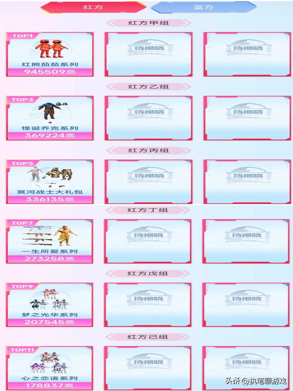 此次《和平精英》的“和平小店”在名單中一共出現54個,在經歷數天的人氣票選後,前36名成功進入第二階段的“紅藍陣營”分組。