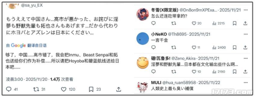 原先我以爲是中文網友反串,結果翻了一圈日推,發現此類言論真不少。