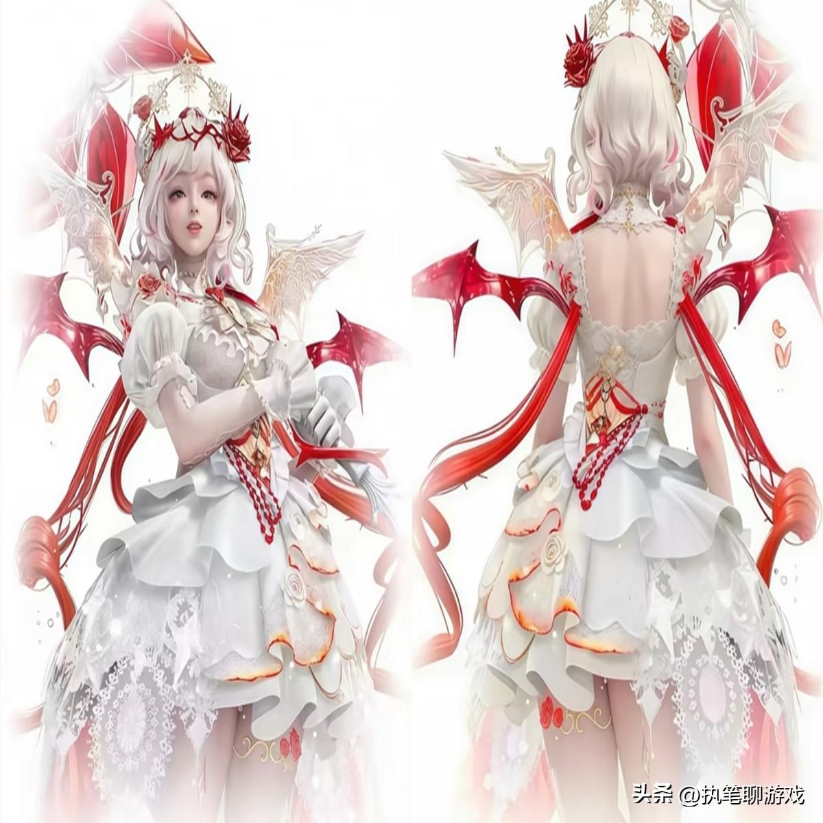 如圖所示,翅膀、皇冠、玫瑰、白色婚紗,同樣也出現了這些元素主題,不過風格就從“可愛萌妹”變成了“傲嬌御姐”,確實有些吸血鬼主題的風格元素在裏面,天哥覺得即便是這個版本是玩家們想要的“真面目”,應該也會獲得不少青睞。