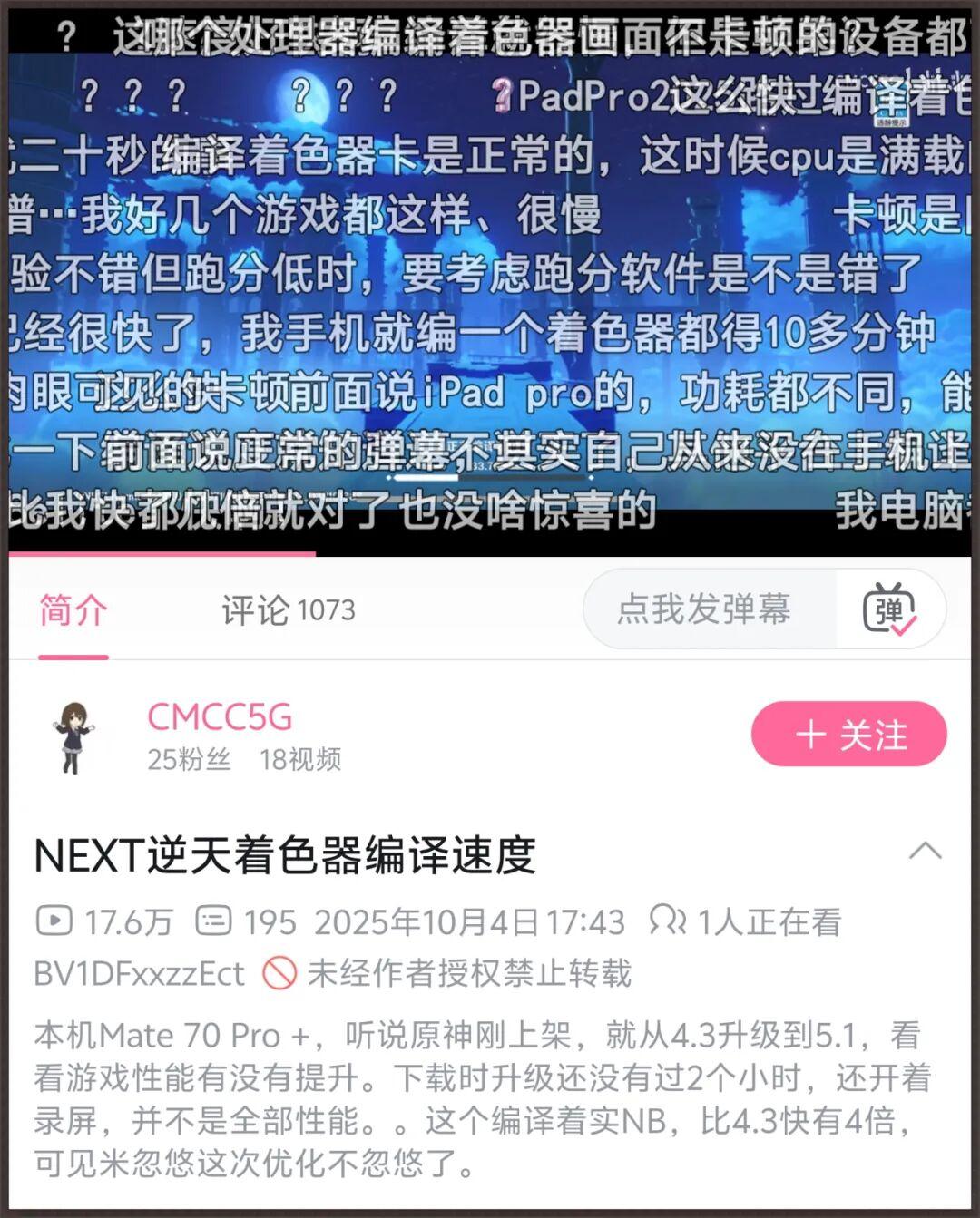 甚至還有像華爲鴻蒙NEXT這樣,因爲鴻蒙原生《原神》編譯着色器的速度特別快,只用了區區3分鐘,而被UP主直呼“黑科技”的情況。