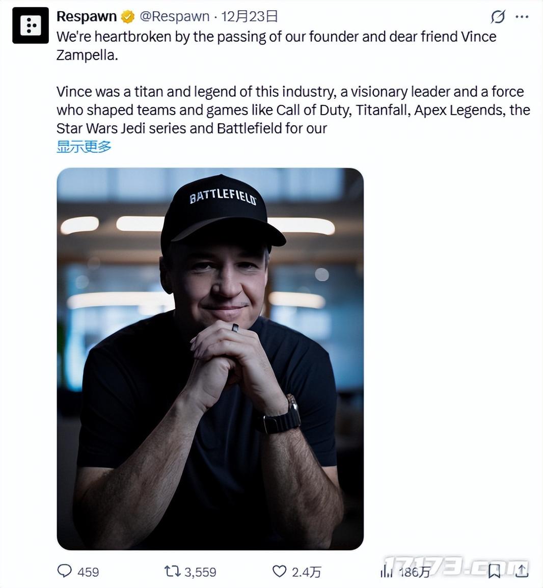 美國時間12月22日,重生娛樂工作室(Respawn Entertainment)發文證實了創始人文斯·讚佩拉逝世的消息。