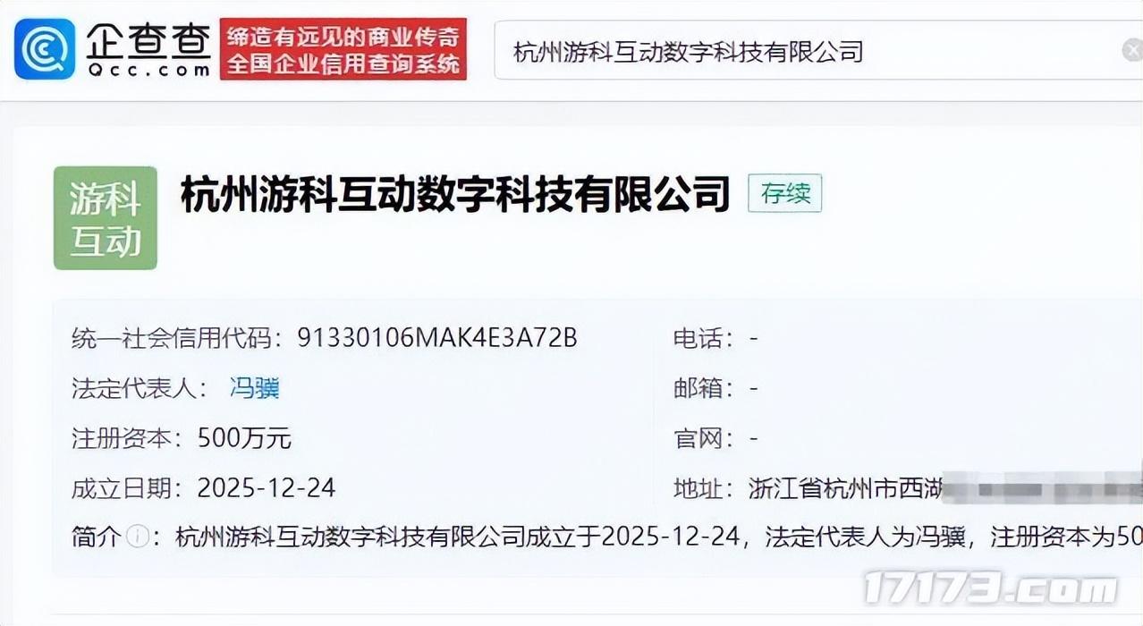 據企查查APP最新工商信息顯示,杭州遊科互動數字科技有限公司正式註冊成立,法定代表人爲遊戲科學創始人、《黑神話:悟空》製作人馮驥。該公司註冊資本爲500萬元人民幣,由杭州遊科互動科技有限公司全資控股。