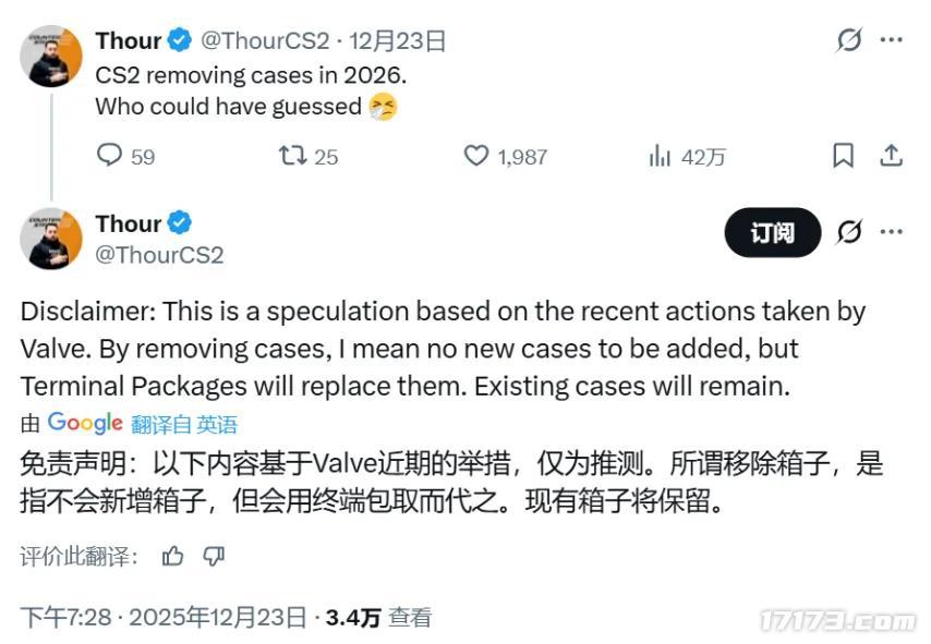知名射擊遊戲數據分析師Thour近日透露,V社旗下《CS2》的經濟系統可能在未來兩年內迎來根本性調整。據其預測,V社計劃最早於2026年起完全停止在遊戲中新增武器皮膚箱,轉而採用其他獲取道具的方式。