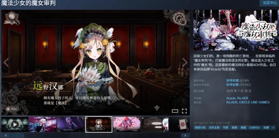 當然,更現實的原因在於,如今的AVG市場,BG題材想要突圍太難。在這個時代,想要把BG戀愛的故事寫得出彩,需要付出更多努力。反而是百合有機會。紫荊說,今年市場上表現亮眼的文字AVG,比如《紙房子》《魔法少女的魔法審判》,都融入了百合元素。