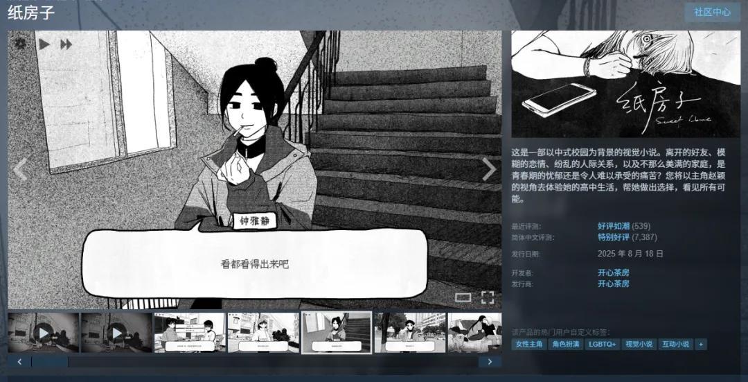 在紫荊看來,市面上的文字 AVG 大多帶着懸浮的質感,受日系作品影響,校園戀愛與幻想題材佔據主流。即便有《中國式家長》這類聚焦現實的作品,整體表達也更偏向娛樂化。
