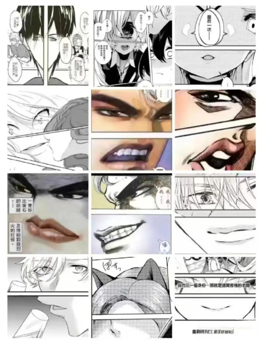 上世紀60年代,手冢治虫潛心研究現代漫畫分鏡時,有一定概率已經預測到後人將用這東西發癲。如今,各種眼口分鏡已成爲二次元不得不品鑑的一環。