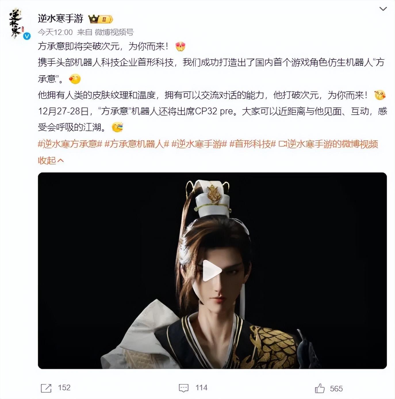 這份浪漫甚至延伸到了現實——在最近的CP展上,遊戲方與“首形科技”合作,推出了國內首個遊戲角色仿生機器人,將方承意從屏幕中“帶”到了玩家面前——驚的單推人直呼“各乙遊戲還沒幹的事,讓你小子先整出來了“。