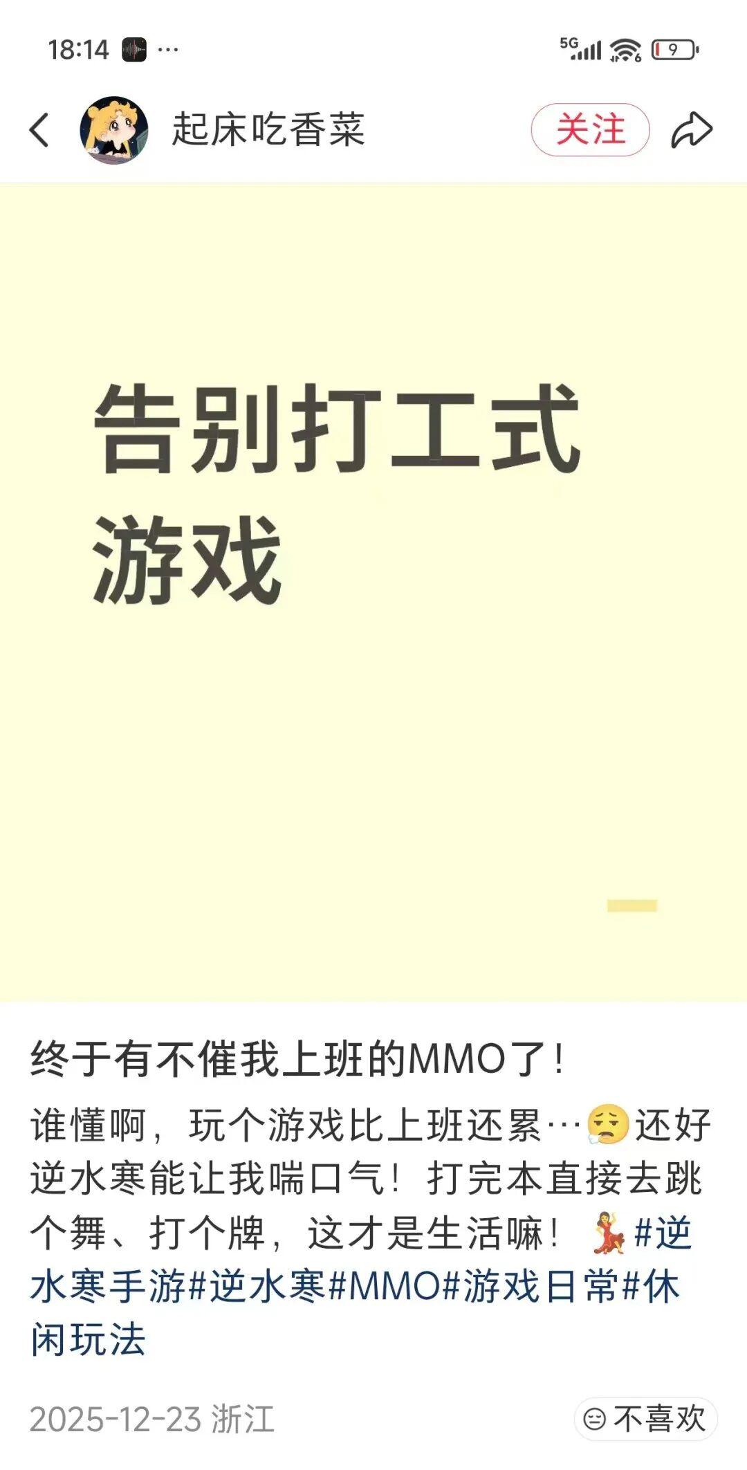 然而,運營兩年多、始終位居暢銷榜前列、擁有4000萬玩家與深度黏性的《逆水寒》手遊,在海量關於“現在的遊戲都是打工式、上班式”的討論裏,恰恰總是被當正面典型。