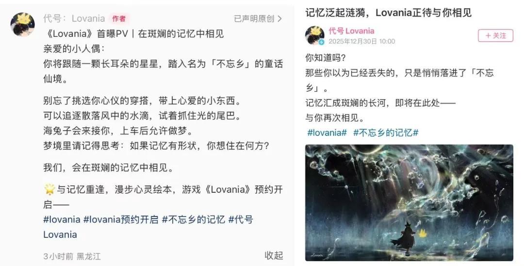 目前,《代號:Lovania》在小紅書上發佈了PV視頻,在B站僅發佈了文字動態,而微信視頻號僅註冊了賬號,未發佈內容。這或許說明,遊戲尚處於宣發冷啓動階段,不過它的目標用戶十分明確。