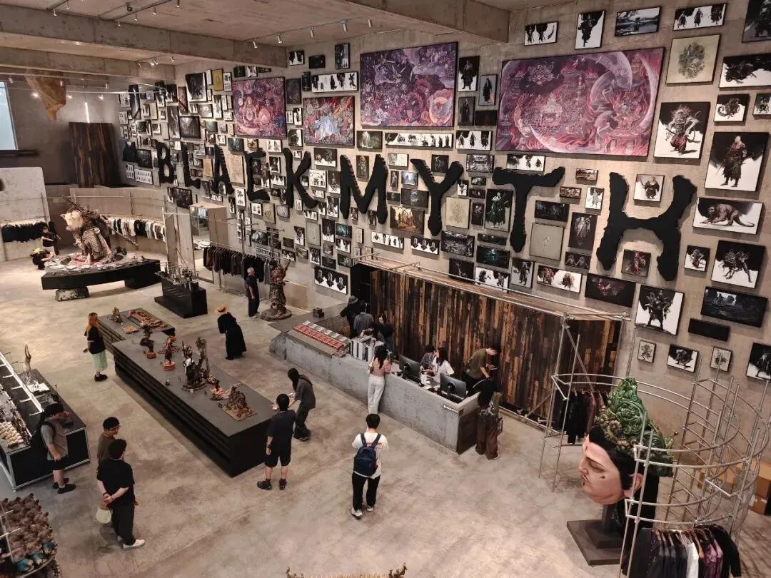 2025年,我們就報道過《黑神話》的品牌零售店。他們的店不像常規的谷店,更像是一個獨立設計師品牌加小型藝術展。目前其商品SKU數量已有120個左右,覆蓋手辦擺件、服裝、玩偶、配飾、家居、包袋6個品類,而且還有持續迭代的換季新品、聯名合作。