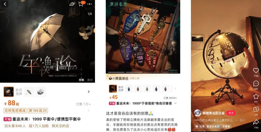 所以除了常規的吧唧、立牌等產品本身好評就不少之外,《1999》還有很多非常規的周邊設計,比如劇情裏出現過的平衡傘,與角色設定捆綁的鑰匙門牌……這些注重調性和個性化的設計,讓周邊也成了《1999》的一塊招牌。