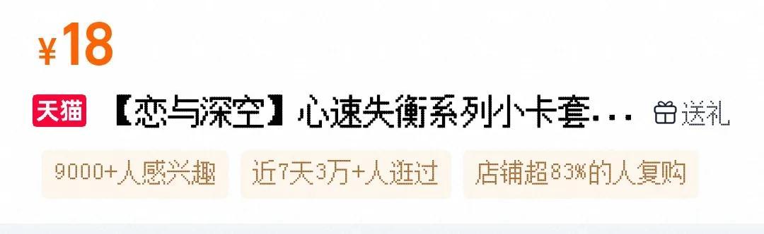 數字前面已經講過了,要解釋這種邏輯的本質,葡萄君反而想舉一個非官方周邊的案例——2025年,在《戀與深空》男主夏以晝的首個生日劇情中,有一個投餵鐵罐裝水果糖的互動行爲,讓不少玩家都被觸動到了。結果,玩家們迅速在現實中找到了德國品牌嘉雲糖作爲代餐。短短几天內,嘉雲糖在天貓就出現了賣斷貨的情況,銷量直接暴漲10倍,引起了廠家的高度重視。