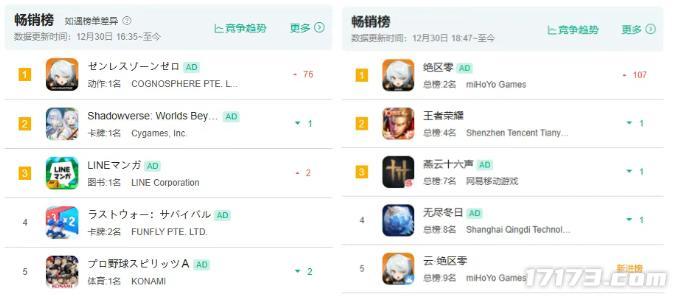 劃重點:《絕區零》2.5版本登頂國區日區IOS遊戲暢銷榜首