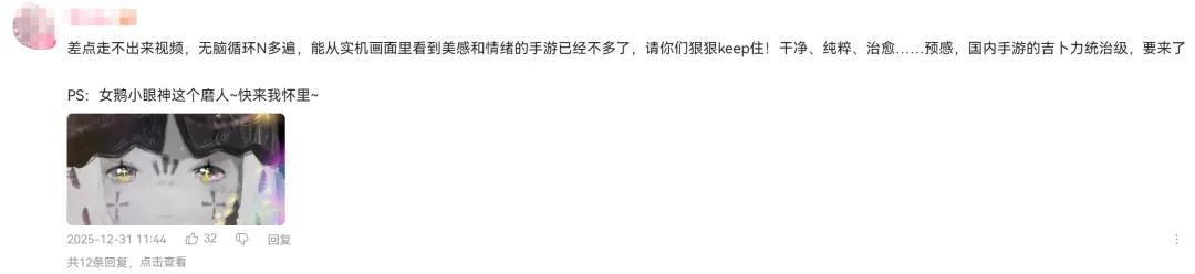 更重要的是,最後這個一眼萬年的眼神,配合手繪風的細節,着實戳到我心裏的癢癢處了。就像評論區玩家說的“把我融掉算了~”,喜歡這類風格的潛在玩家肯定不在少數。
