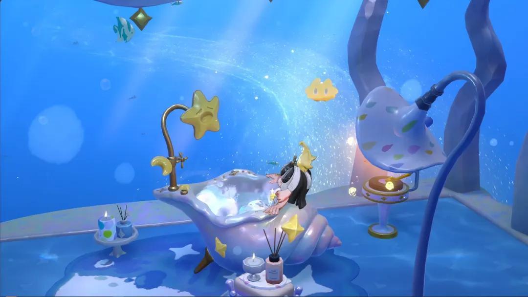 基於這種世界觀設定,《代號:Lovania》的定位相對輕鬆和休閒。玩家可以在遊戲裏建造和裝點家園、打扮自己的角色。有意思的是,家園位於巨大浮空魔鬼魚的腹中,配合不同的主題裝扮,玩家可以一邊體驗海洋房的奇妙場景一邊來個泡泡浴放鬆身心。