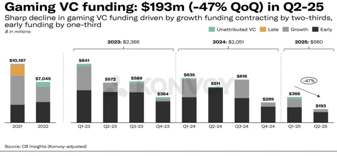 據CB Insights統計,2025年Q2的風險投資規模同比環比均驟減