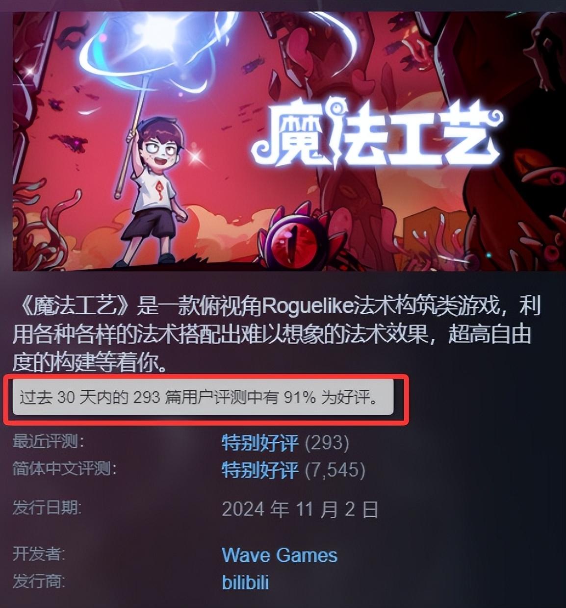 2025年12月,由bilibili遊戲發行、波浪遊戲開發的俯視角Roguelike遊戲《魔法工藝》手遊移植版正式上線。截至1月6日,《魔法工藝》手遊移植版全平臺銷量已突破18萬份,PC版全球銷量也超過70萬份。