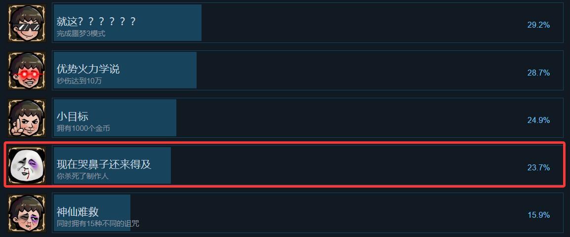 Steam成就顯示,共有23.7%的玩家打敗了製作人