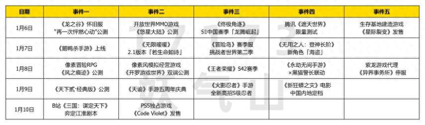 在這裏你將能看到未來一週遊戲圈的各項動態,本週我們將會迎來《綠色地獄》開發商的新作發售;《天下貳·經典版》公測;《龍之谷》懷舊服公測;《無限暖暖》2.1版本更新;《王者榮耀》S42賽季更新等諸多事件。