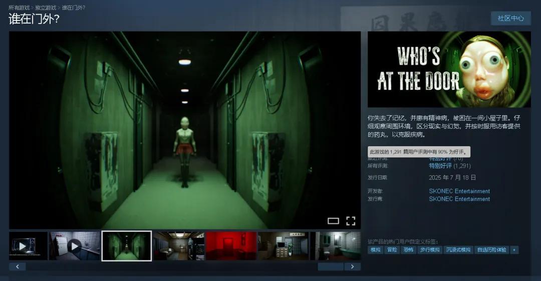 再換個場景,到了《誰在門外》裏,你的視角變成了精神病人,要觀察是否出現了幻覺並按規則服藥。依然是循環+解謎,但《誰在門外》沒有死板地套公式,而是提煉了《8號出口》的醍醐味兒,放到了一套完全不同的框架上,依然很有用。