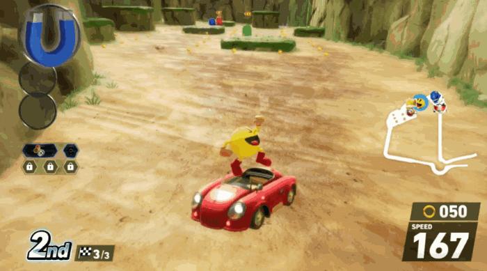 就拿這次付費的“喫豆人”DLC內容來說,其不僅推出了新的喫豆人賽車手和專屬賽車,還加入了以“喫豆人”爲主題的全新賽道。在新賽道中,金幣會變成豆子,而《喫豆人》中的那些怪物也都變成了賽道上的陷阱與障礙物,甚至部分賽道會變成極具《喫豆人》風格的老式遊戲畫風,設計相當用心。