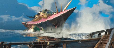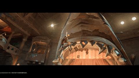 別看這小小的浪花,裏面其實有很多門道:巨型海怪出現時,海面波形會實時調整,船隻駛過還會呈現逼真的分水效果——對水的物理模擬,時至今日依然是業界技術難點。