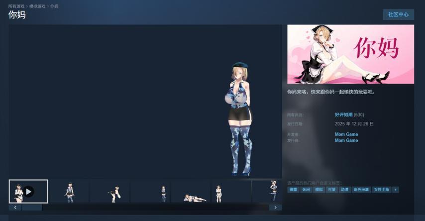 這波風潮的“最新戰果”,是一款名爲《你媽》的桌寵軟件。這裏此“媽”非彼媽,它其實是一位會跟隨你鼠標目光移動的二次元角色,因爲角色的身材爆好,所以玩家能做的就是拖拽、旋轉和給她換裝。