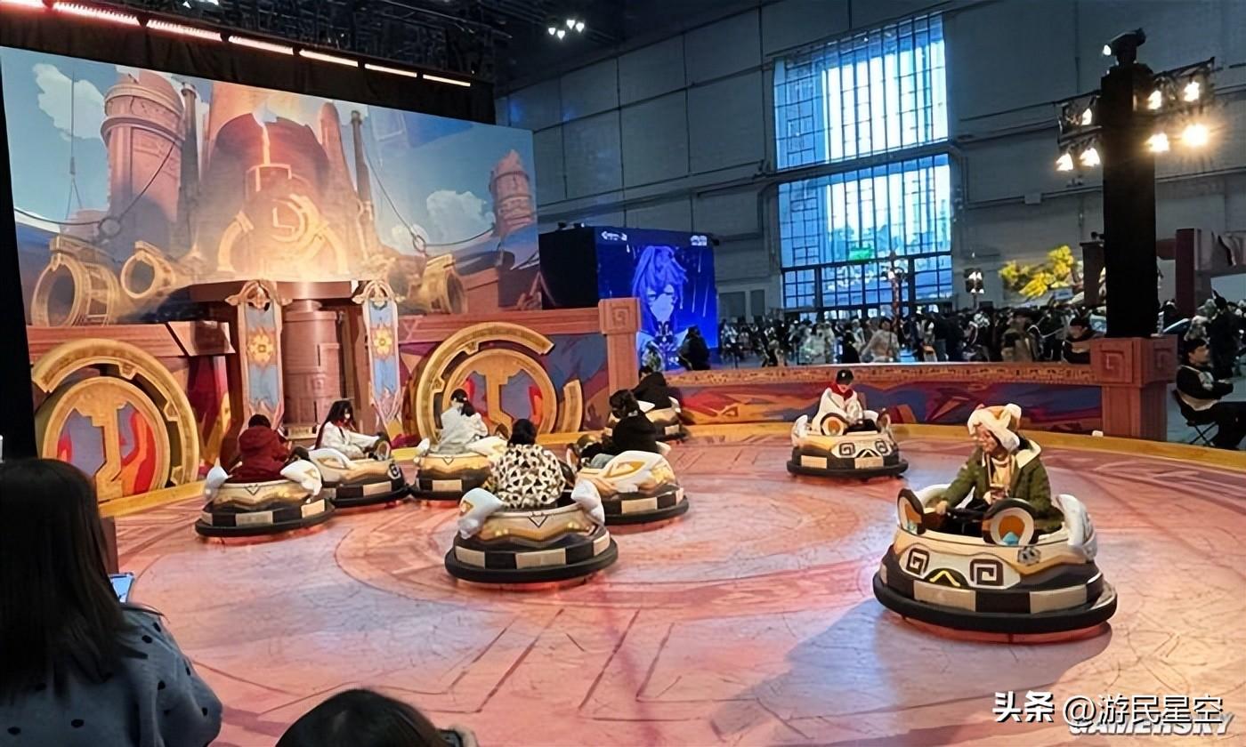 而屬於新區域“納塔”和“諾德卡萊”的遊樂設施就更加豐富了。納塔的“聖火競技場”主題碰碰車,大概是全場排隊時間最長的項目,許多坐上碰碰車的成年人也並不覺得尷尬,臉上全是找回童心的笑容。一旁的“躍躍律動舞力聚會”小遊戲區域也不遑多讓,四個陌生人在臺上拋開“繁文縟節”盡情搖擺,舉手投足間盡是對勝利的渴望。
