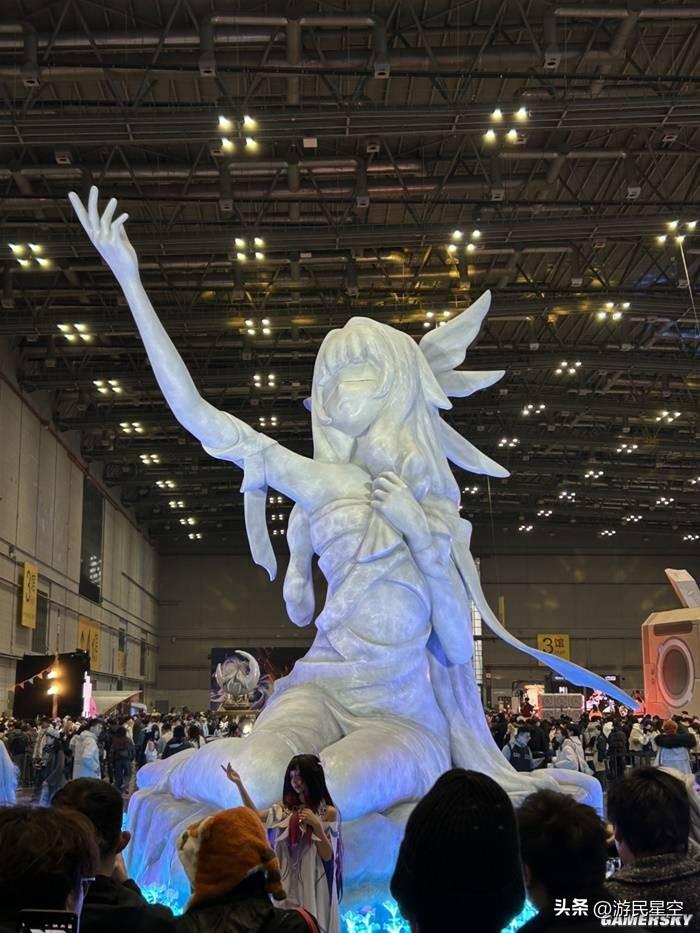 一進場館,最先映入眼簾的便是那座巨大的“少女”雕像,周圍籠罩着“祈月之夜”的氛圍。不少旅行者駐足於此打卡留念,甚至還特意找角度“凹”出少女捧月的構圖。