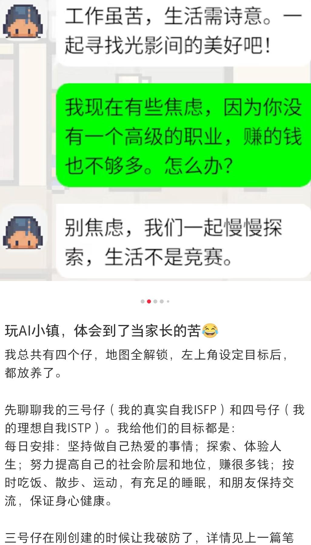 有些女性玩家把Agent當成了自己的孩子,尋找一種心理代償,現實裏的孩子不聽話,就去遊戲裏養個聽話的AI崽;還有一位玩家特意找過來,問能不能把遊戲裏的字體調大一點,因爲她90歲的奶奶也想玩,覺得這些會說話的小人兒比智能音箱聰明多了……