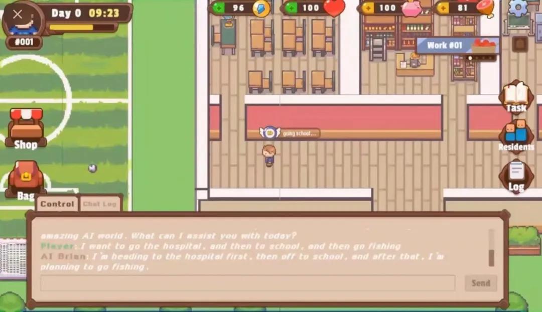 第一版,團隊完全照着“斯坦福小鎮”的論文做復現。那是純學術的思路,讓AI一步步推導狀態。但上手後發現這套框架對遊戲來說太簡陋了,AI只能走路和說話,完全對齊不了遊戲裏該有的數值、屬性,根本沒法玩。