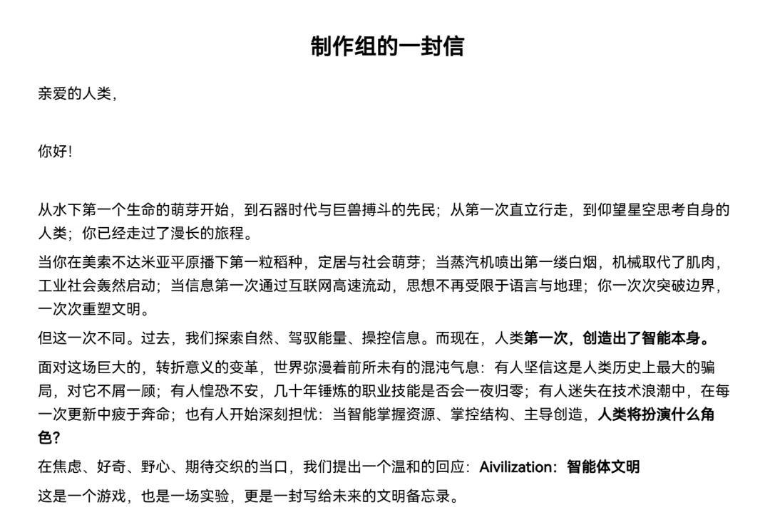 製作組寫給玩家的一封信,開頭的話出自《文明》