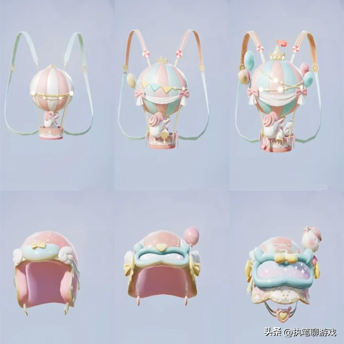 接下來再來看頭盔、揹包,頭盔的設計實屬一般,在《和平精英》裏比較常見,反倒是揹包採用了熱氣球的主題來設計,看起來還挺新穎的,而且“體積”較小,也適合搭配比較二次元的套裝或角色,整體還算是說得過去。