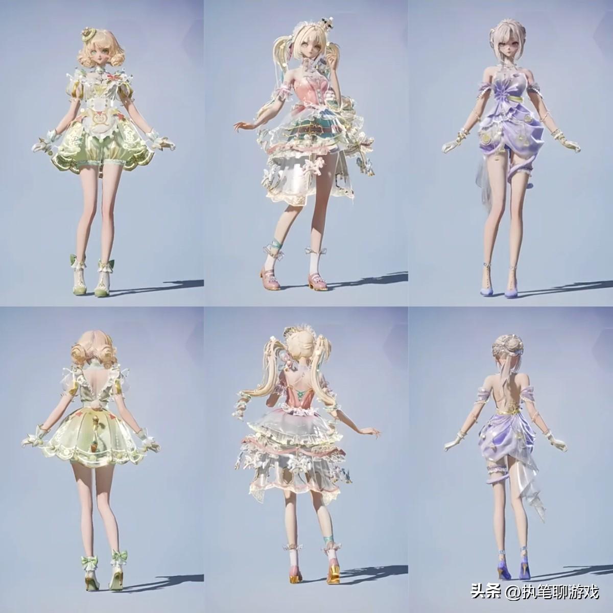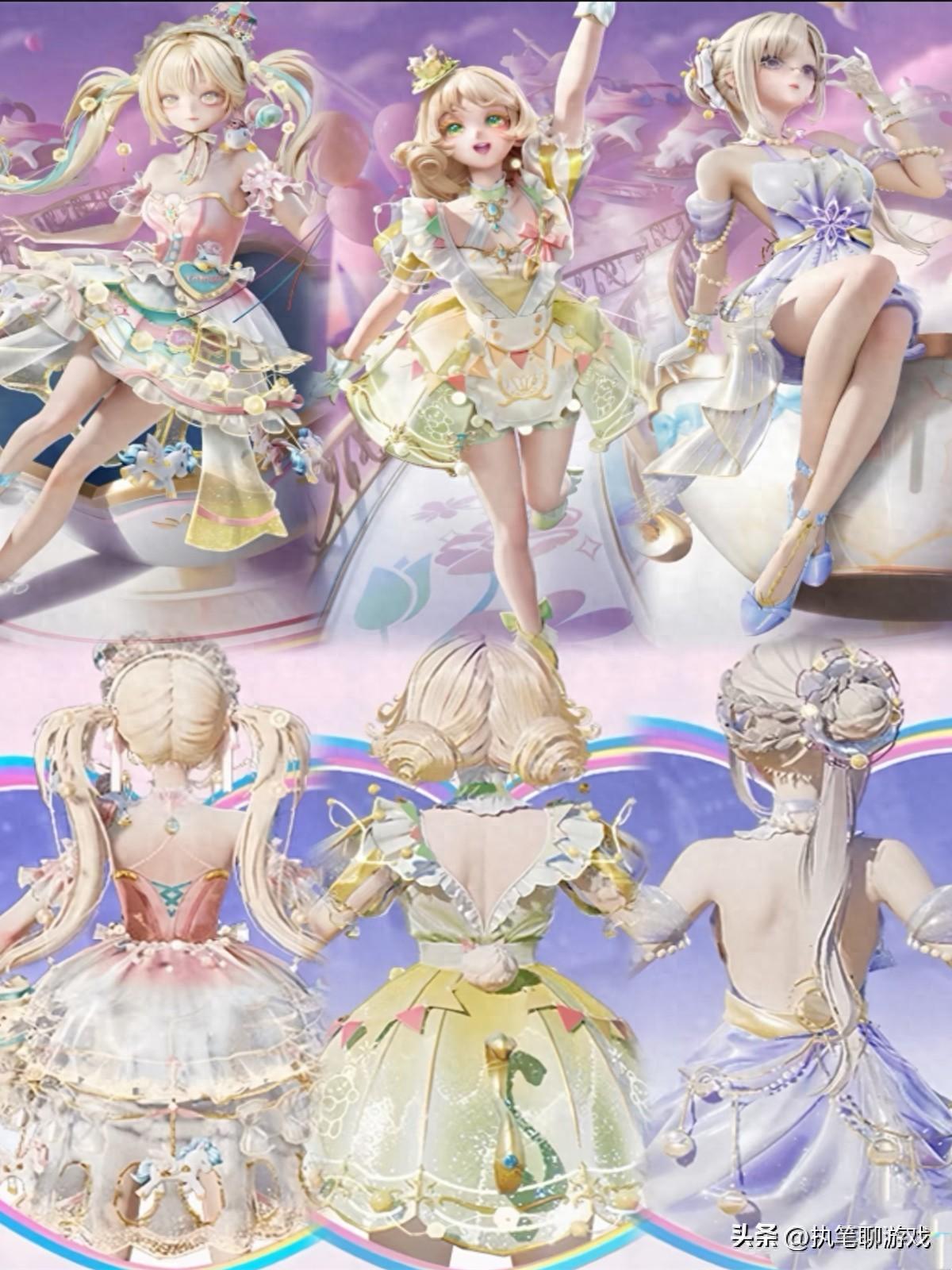 如圖所示,中間C位的“迴旋牧夢使”,雖然金色雙馬尾挺可愛,而且臉型、妝容非常精緻,但是旋轉木馬式的“蓬蓬裙”看起來有一種厚重感。