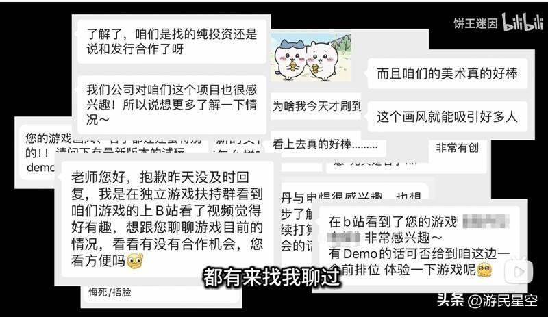 這些有梗又獨特的遊戲開發小白日常,讓餅王在B站獲得了一批忠實的粉絲,其中還包括許多同樣對遊戲開發有夢想的從業者們。但更重要的是,她的視頻幫團隊找到了第一桶投資,還是真·天使的那種。