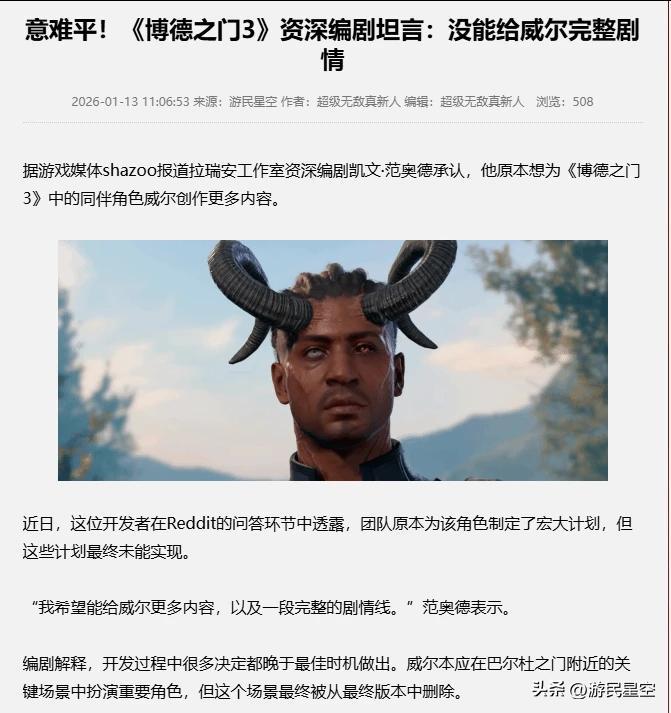 世界上不存在完美的遊戲,不管是什麼遊戲,在發售那一天,開發者們必定是會覺得遺憾的,就連《博德之門3》的主創在最近的採訪中也向玩家道了歉,沒能給其中一個NPC更完整的故事。