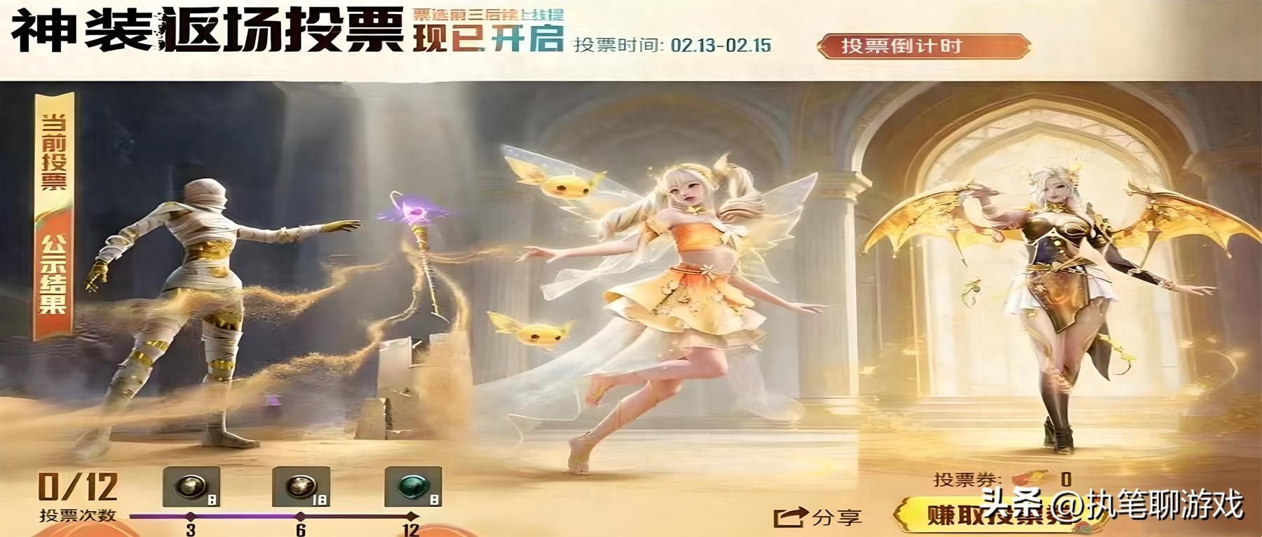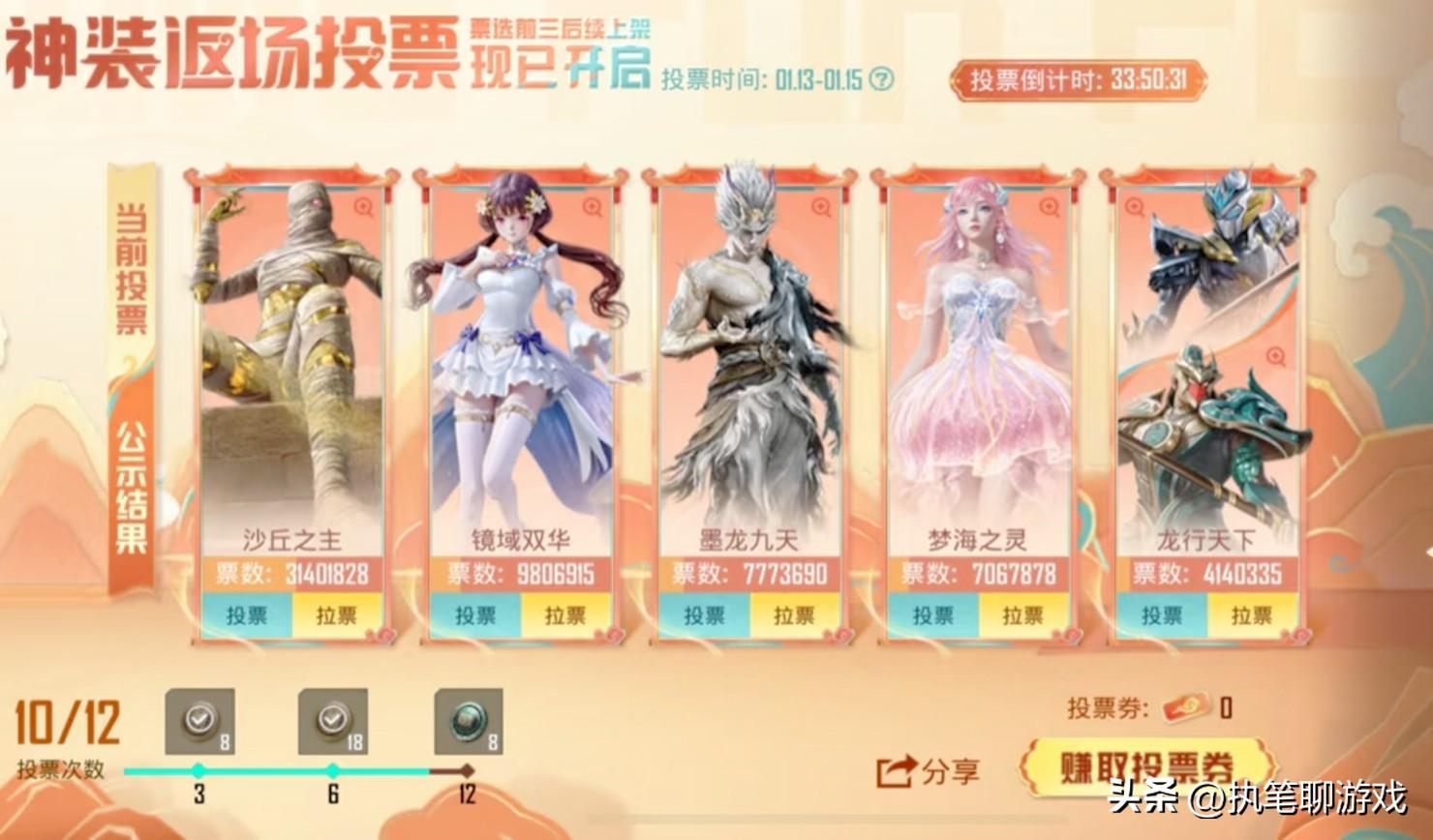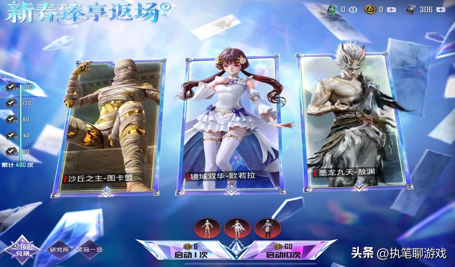 同樣以第一次返場爲例,當初票選結果出爐後,木乃伊、歐若拉、野人以“三合一”的方式出現,假設抽不到紅裝的話,那麼需要2000R左右的點券才能獲得1200個碎片,比起平日裏單一的璀璨轉盤來講,明顯需要更多的點券。