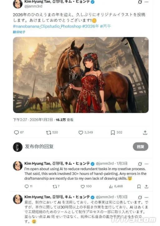 這番說辭看似很迷惑,實際上也是韓遊廠商準備用AI來降低成本的一個行業普遍行爲,在年初那幾天他發的一張馬年賀圖就被網友扒出是AI生成的,瑕疵相當明顯。