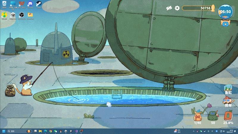 將《貓貓釣遊記》當成你的桌面壁紙,或將其窗口置頂,菲舍就會在屏幕角落靜靜垂釣,成爲你最高效的“雲陪伴”。遊戲中的場景會隨真實時間晝夜交替、晴雨變換,搭配流水潺潺與微風輕撫的背景音效,爲你營造一個沉浸又放鬆的專注環境。