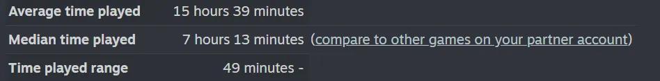 從他們的後臺看,玩家平均遊戲時長超過了15小時,中位數也有7小時。在Steam的評論區,玩了幾十個小時,甚至上百小時的玩家比比皆是。