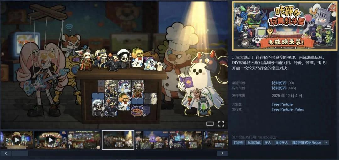 雖然是第一次做獨立遊戲,但趙小嘉卻順利得有些不可思議。《咔砰!玩具亂鬥屋》在2025年年初立項,12月初順利上線了Steam,賣了幾萬份,拿到了86%的好評率,遊戲推出時也登頂steam首頁【熱門即將推出】和【人氣躥升的新品】榜單。