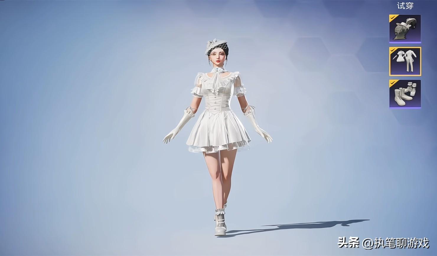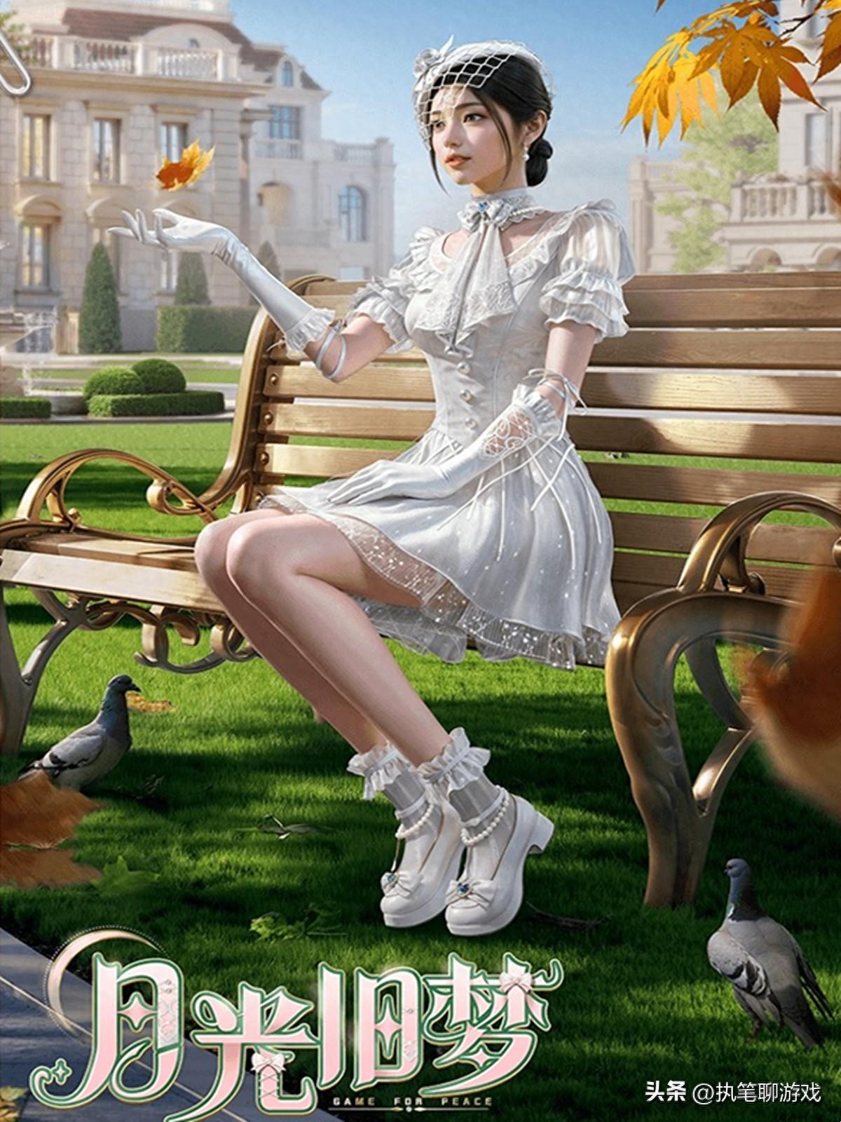如圖所示,“月光舊夢”屬於標準的“三件套”,衣服、鞋子、頭髮可以DIY裝扮。首先來看女角色的表現,純白色的晚禮服設計,是不是像極了大轉盤裏的“純夢嫁紗”呢?完全可以在大轉盤裏當“副套”。