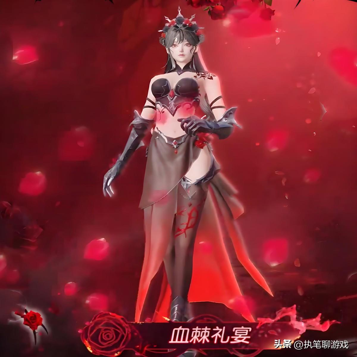 接下來我們來看“血棘禮宴”的新套裝,整體的設計算得上是中規中矩吧,玫瑰主題以及若隱若現的黑紗,屬於標準的晚禮服設計。