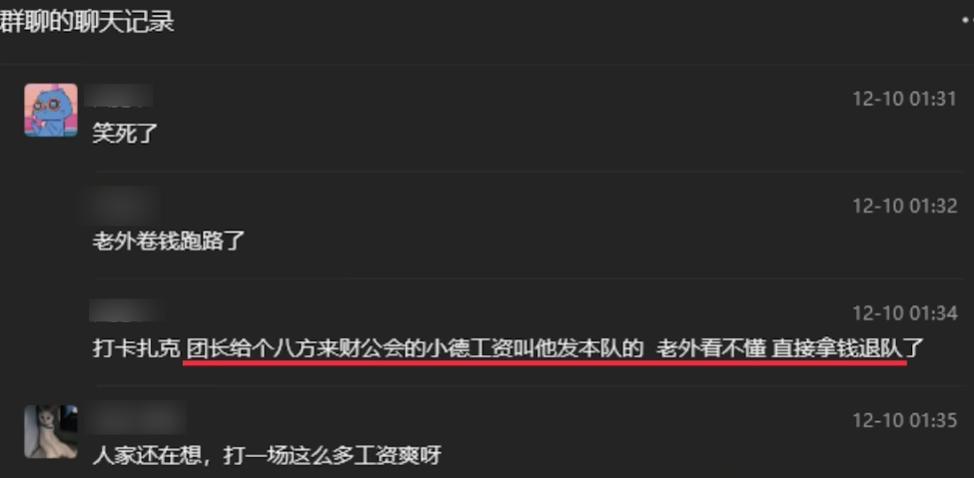 然後呢,這事就鬧出笑話了。八方來財公會的老外不知道這種方式,拿着四個隊友的工資,就……“捲款跑路”了。我估計他還在心想怎麼你們中國時光服出手這麼大方,真是大大滴呦西,下次帶着我的小姨子一起來。