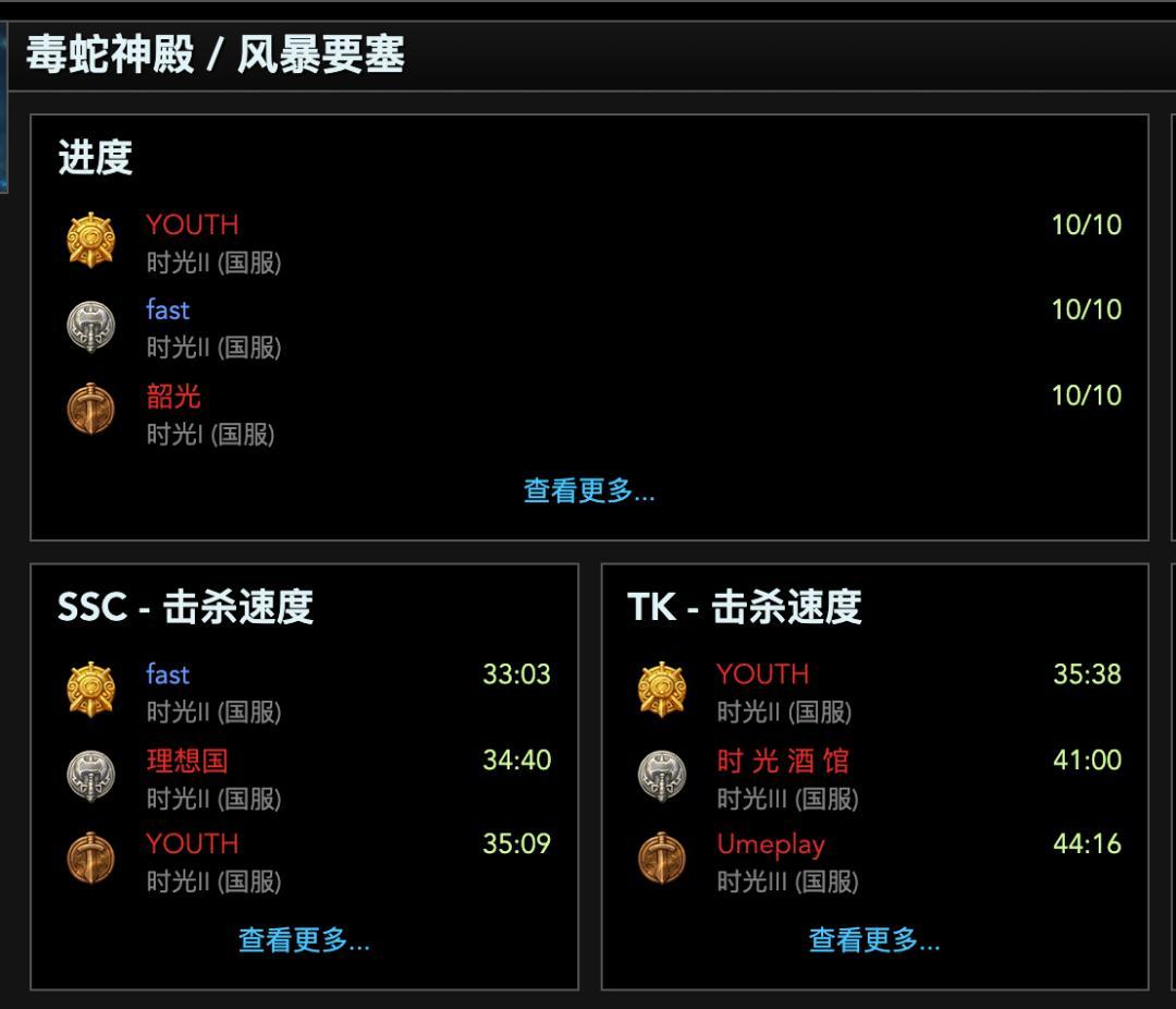 High Class:美服時間爲主的競速團,雖然組織得晚,但也打進了40分鐘,和現在的國服中游公會水平差不多;