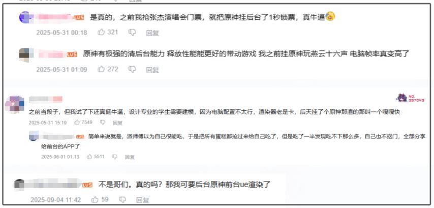 還有搞設計的網友聲稱,開着《原神》,CAD和渲染軟件都老實了,不再莫名閃退,渲染還嘎嘎快。